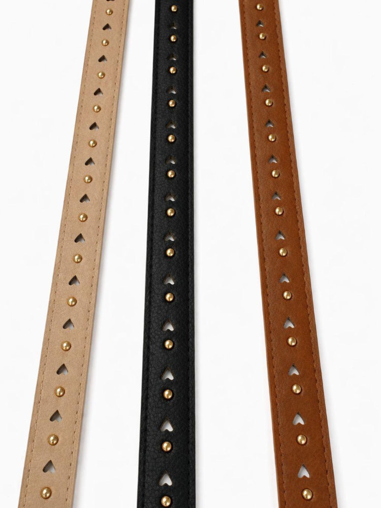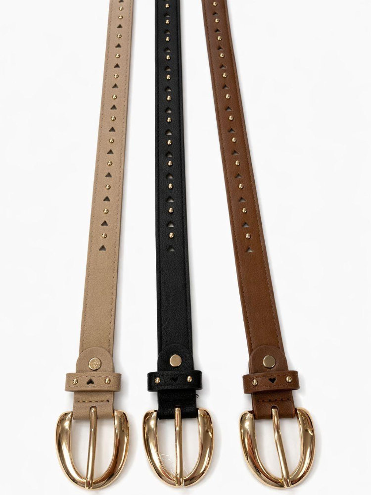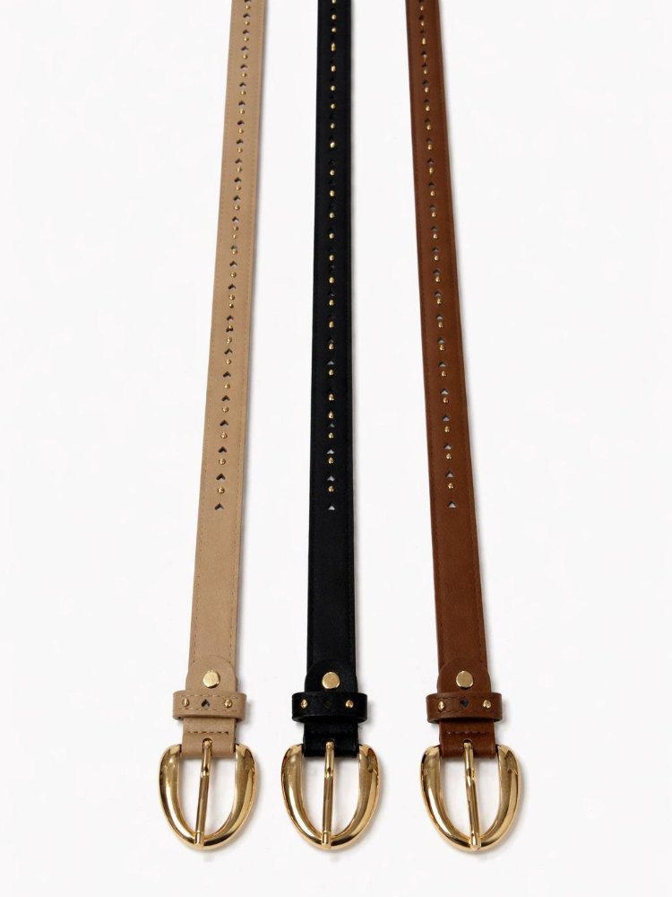 Cinturones finos de mujer, similares a los modelos de cuero con hebilla dorada.
