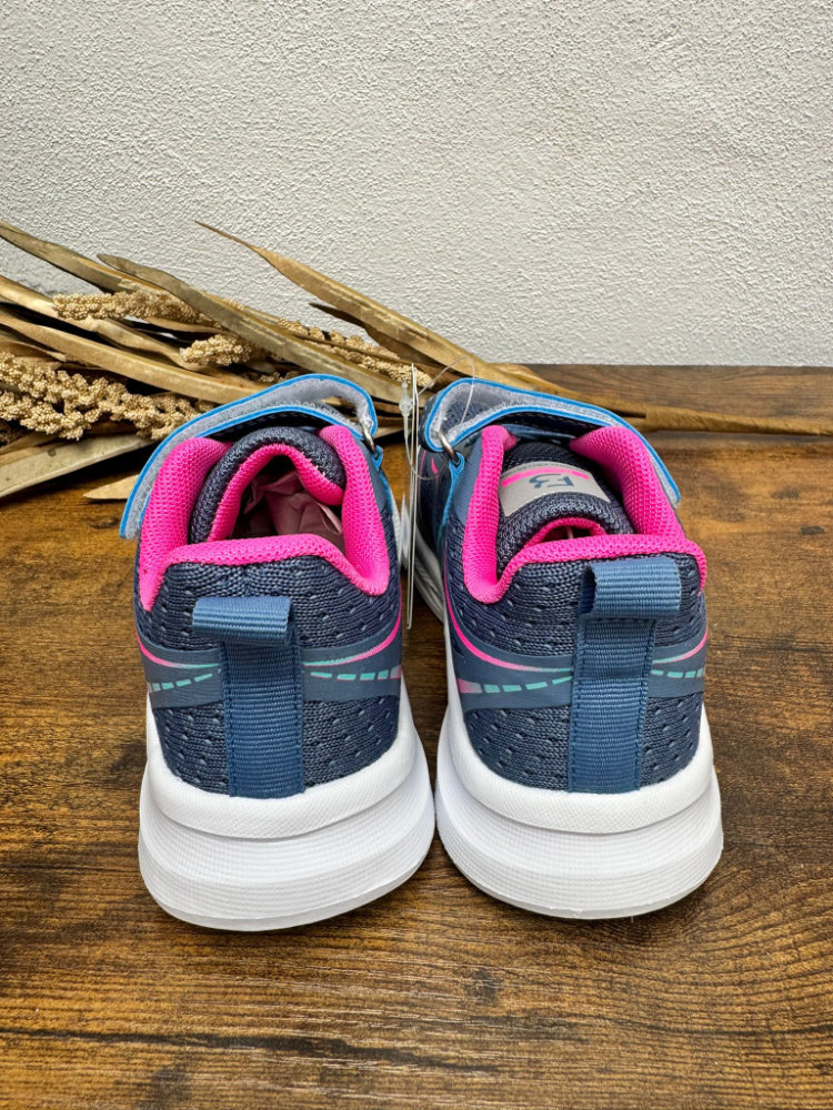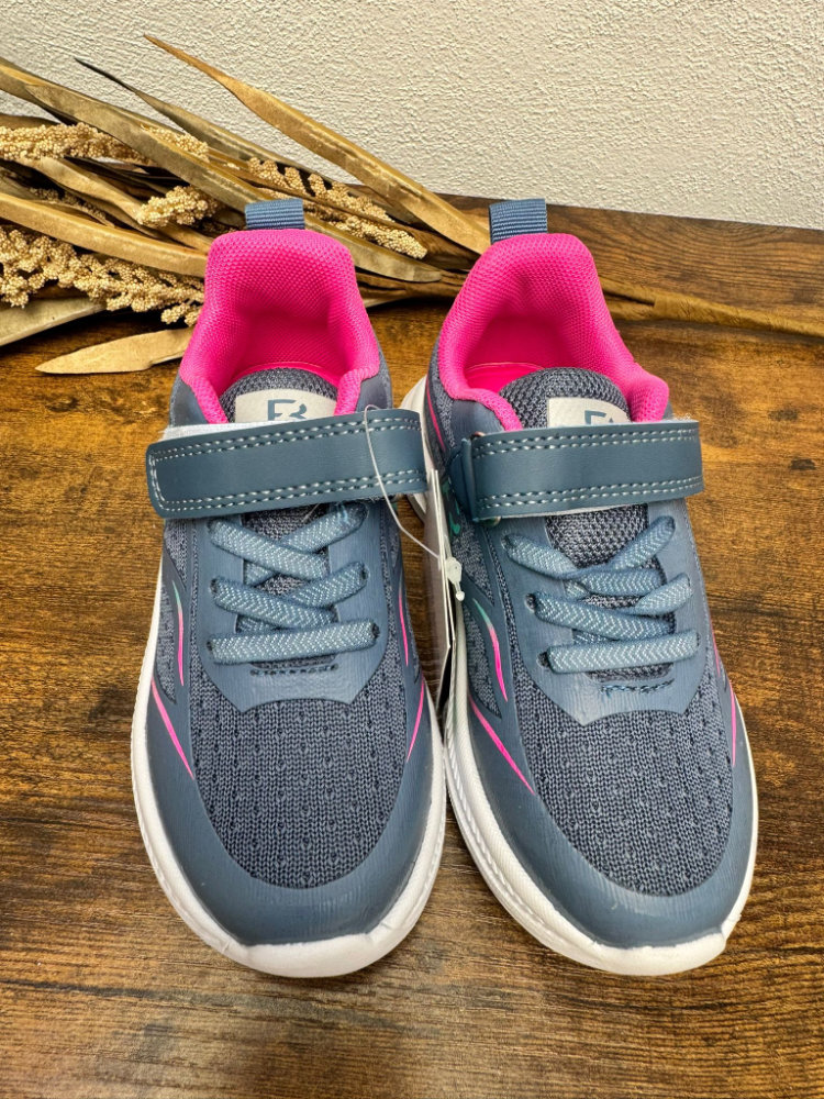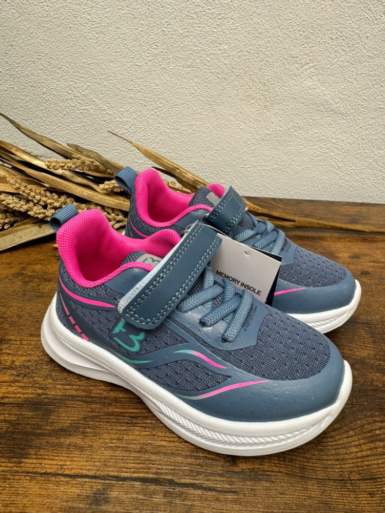 Deportiva en tono azul grisáceo y fucsia. Cierre con velcro.