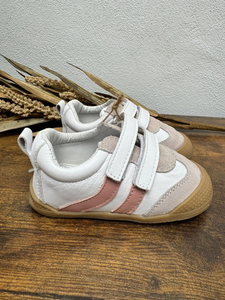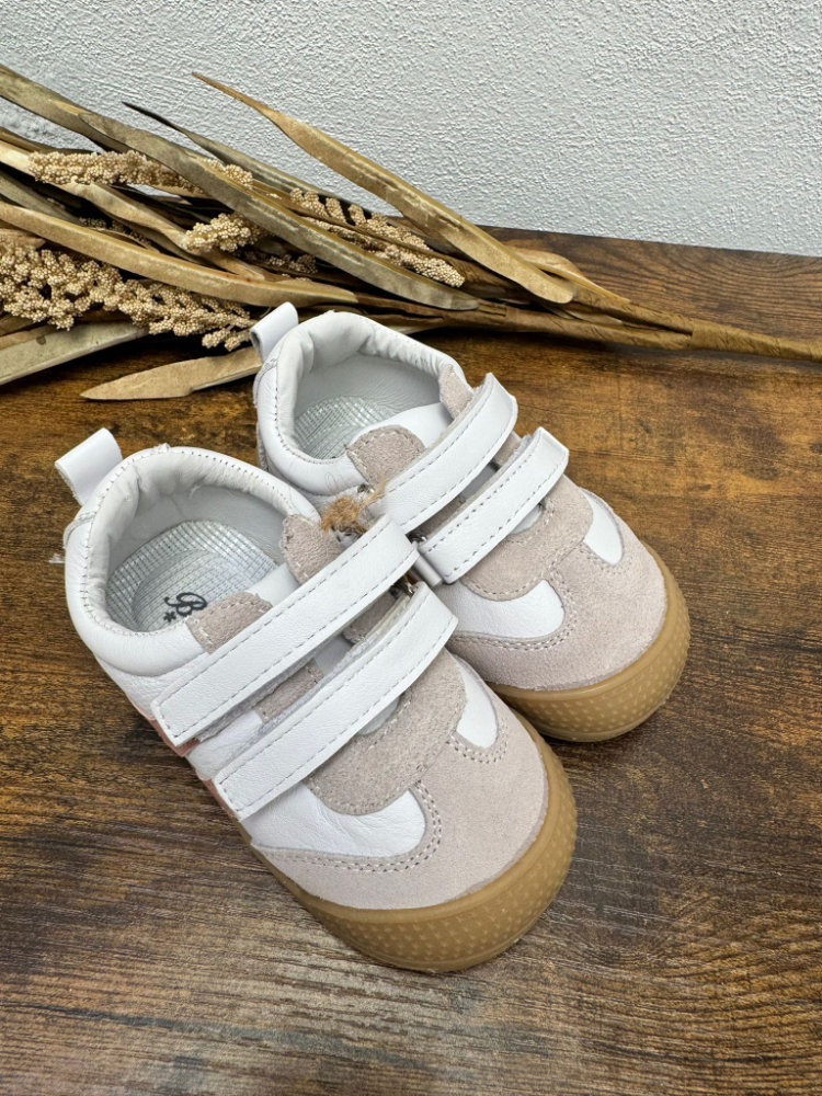 Zapatilla deportiva respetuoso en tono blanco con detalles y rosas. Cierre con velcro.