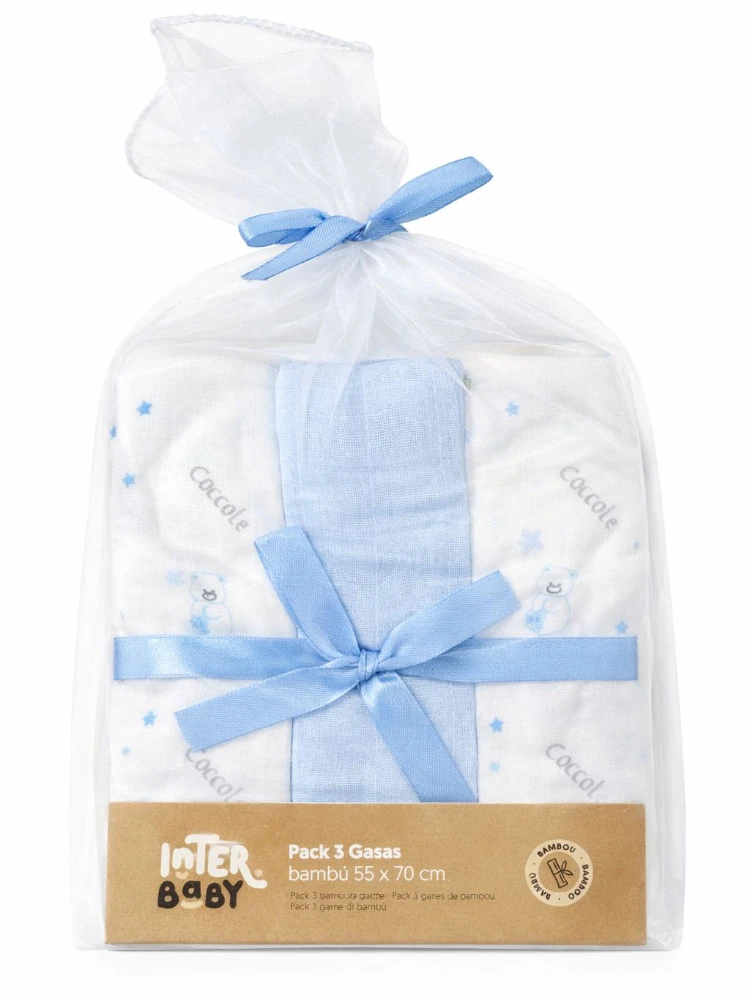 Set de Gasas – Bambú Interbaby – Mod. celeste