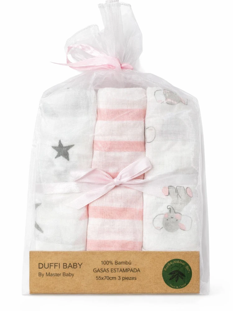 Set de Gasas – Bambú Interbaby – Mod. Rosa elefantes
