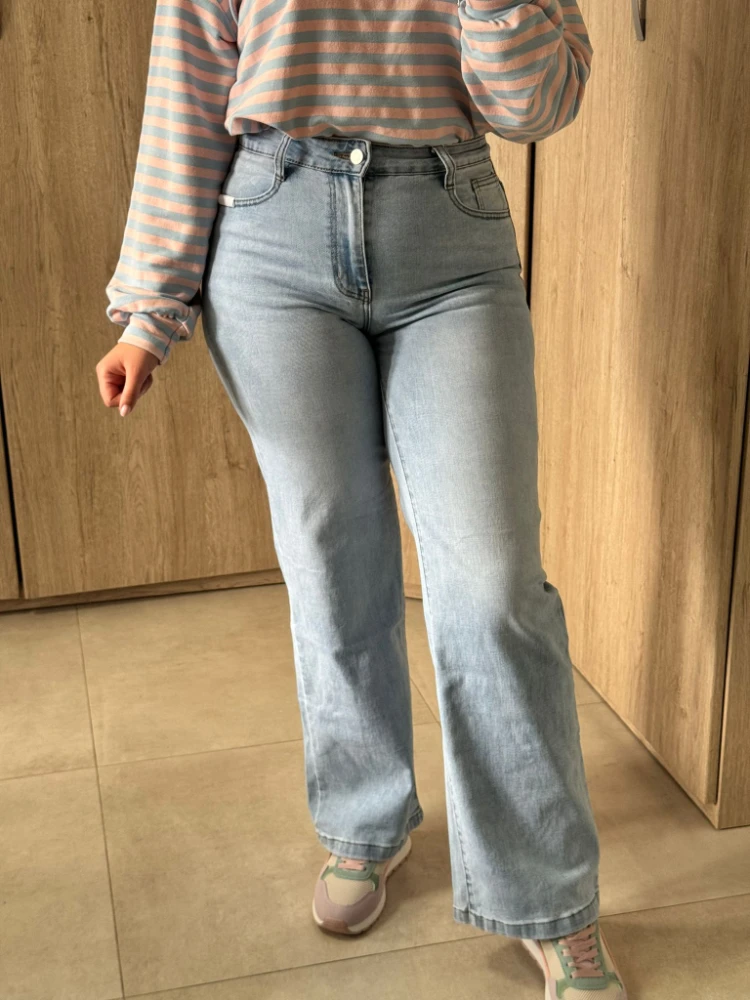 Vaquero claro con flores bordadas en ambos bolsillos trasero.